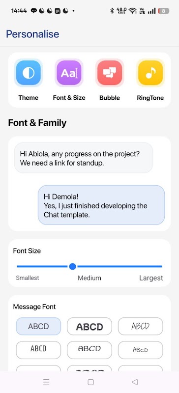 Voeg een vleugje persoonlijkheid toe aan je chats met aangepaste ballonkleuren. Geef gesprekken een eigen, unieke look, zodat je berichten visueel aantrekkelijker worden.