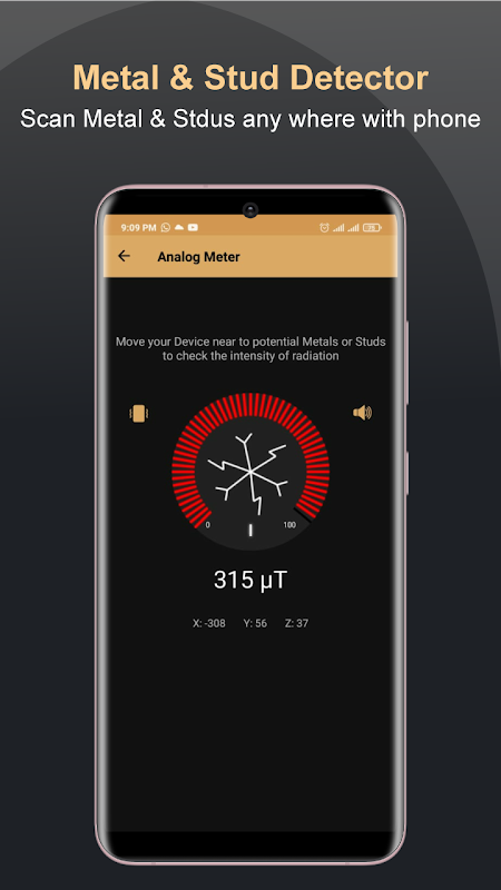 Metal Detector & Stud Finder: Metal Detector & Stud finder for Android is an App that uses electromagnetic field sensor or emf sensor to detect metals that show ferromagnetic properties. Metal Stud finder app uses same magnetic field sensor to find out the stud and beams that are made up of metals that shows ferromagnetic properties.