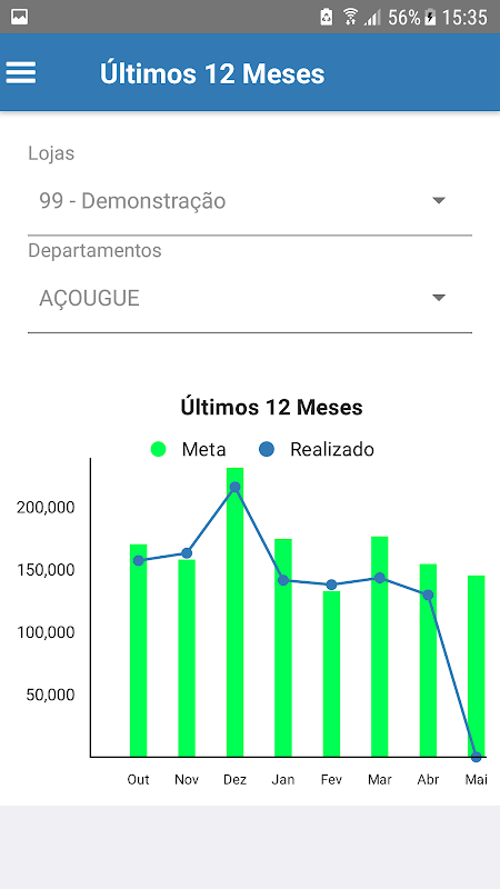 O Aplicativo também informa os valores atingidos dos departamentos da loja versus os valores das metas propostas, evidenciando quais devem ser trabalhados no chão de loja.