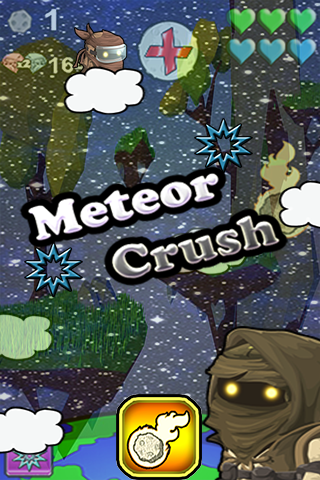 Meteor Crush the game where you crush meteors falling from the sky to save the earth. The earth will be blown to bits if any meteor hits the ground. To crush the meteor, you have to tap on the meteor at the right time before it falls to earth.