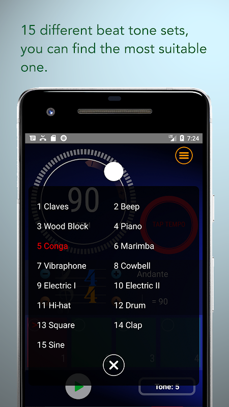 - Het afspelen kan worden bestuurd door de bedrade of Bluetooth headset. Het is bijzonder geschikt voor sporttraining met een koptelefoon. (De meeste metronoom apps niet over deze functie).