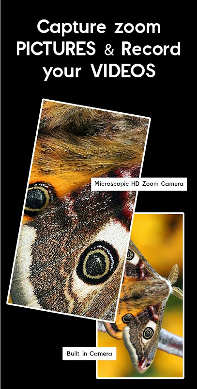 microscoop hd zoom camera is een geavanceerde zoom-app waarmee je de verre objecten bij weinig licht kunt zien. je hebt vier verschillende kleuropties voor de zoomfiltereffecten om het kleine object te vinden met foto-opname en video-opname. je kunt deze applicatie ook gebruiken als telescoop, verrekijker, vergrootglas, ultrazoom, nachtcamera en nog veel meer met autofocusflitslicht, zelfs op donkere plaatsen. met behulp van deze applicatie kunt u de camera handmatig aanpassen, zoals belichting, wat helpt op donkere plaatsen.