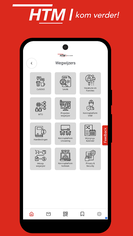 Met de Mijn HTM app ben je snel op de hoogte van bedrijfsinformatie en bedrijfsberichten van HTM. Ook is het mogelijk om in de app persoonlijke berichten te ontvangen, een werkplekreservering te maken en om reis- en contactinformatie naar de ambassades in Den Haag in te zien.