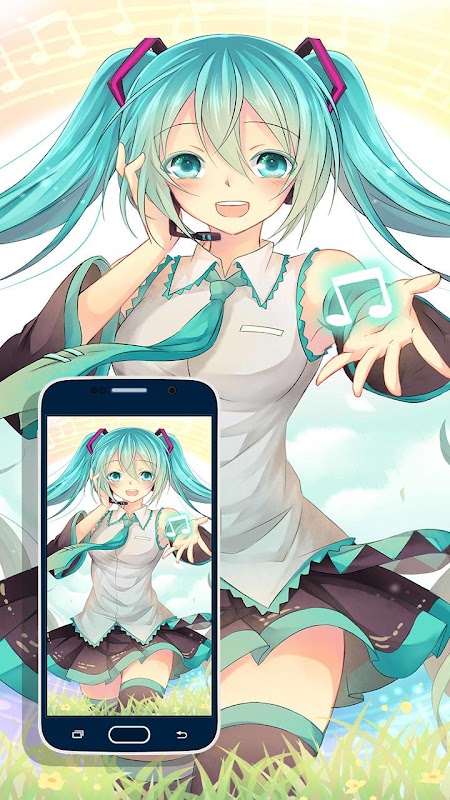 Miku wallpaper-applicatie: Hatsune Miku heeft een klein formaat, dus het gebruikt niet veel opslagruimte op je mobiel. maar je kunt genieten van Vocaloid: heel veel Hatsune Miku Wallpaper.