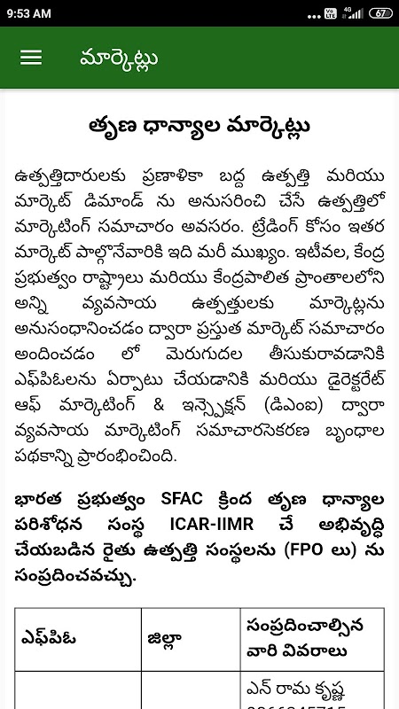 Primary purpose of the app is to provide knowledge about improved production technologies, primary processing, secondary processing and market information. This app is developed mainly for providing millets advisory to all the users namely, millets growers, extension officers, entrepreneurs, students, academicians, and policy makers.