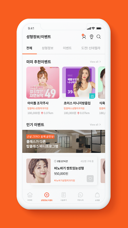 - This is a space where events (products) registered by the hospital are posted by category, such as by part, in order of popularity, in order of closing, and events with many reviews.