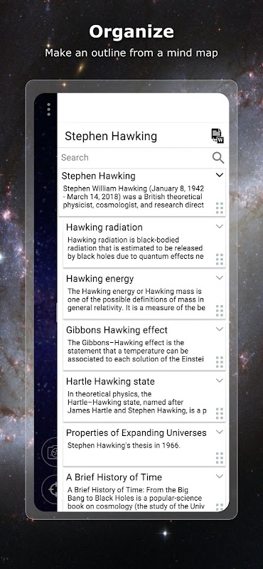 Improve your brainstorming and creative thinking. Mind Mapping 3D helps you build and visualize your ideas. It's a more visual way to think without constraints. Use this app to make amazing 3D mind maps with images and links to what you need, like web pages, videos, and file attachments. Mind Mapping 3D can help you come up with ideas for a presentation, plan, invention, or story. Install Mind Mapping 3D now.