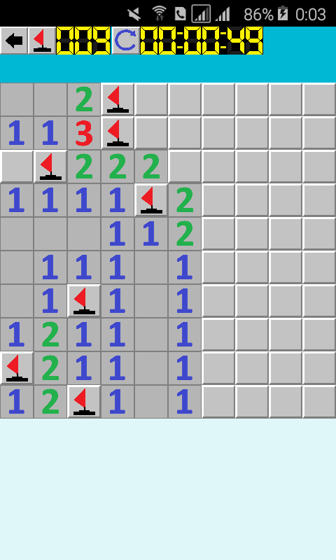 - amateur: het aantal cellen 15x15, 26 bommen;