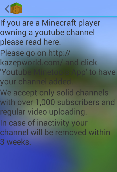 MineTools is a free application which helps Minecraft users with some tips and guides. The application has also a profile system and youtube channel promotion where you can request your channel shown. It has different tips and guides which helps newbies or persons that wish to create a server.