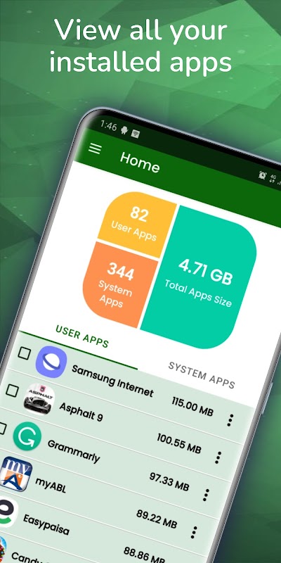 Eenvoudig uw geïnstalleerde apps en systeem-apps beheren.