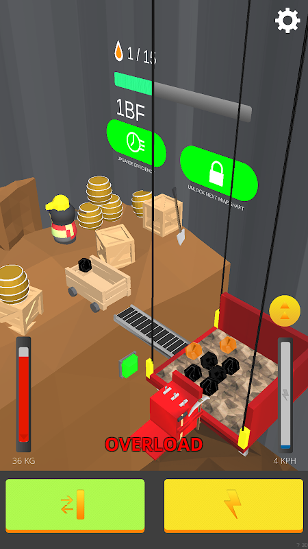 Mijnwerkers graven en boren de hulpbronnen en helpen hen deze te transporteren om middelen te verdienen om uw mijn en lift te upgraden.