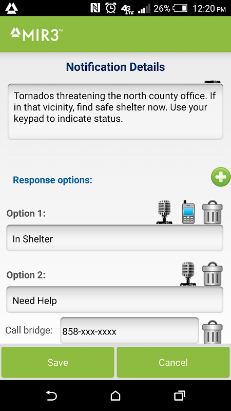MIR3 Mobile lets Android users create and send alerts to pre-defined groups or individuals directly from their phone. It receives notifications over phone networks or Wi-Fi, so if a user is traveling internationally and doesn’t have local coverage, they’ll still receive messages. When they respond to an alert, their GPS location is detected and returned with the response, making it easy to see if the person is in danger and needs direction or assistance.