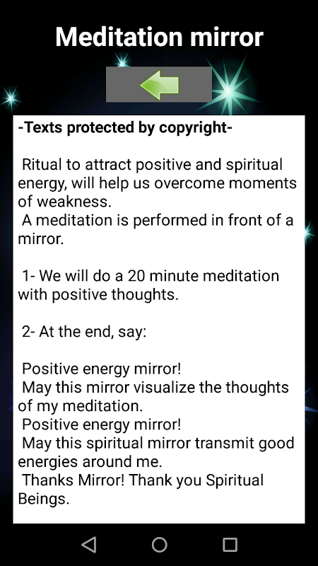 Deze applicatie bevat spreuken van positieve energie voor zichzelf, dus het is belangrijk om de spiegel te gebruiken. Om ons beeld te weerspiegelen om meer spirituele verbinding te hebben met onze ziel en aura.