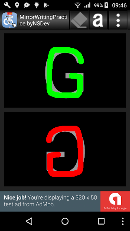 Deze toepassing is voor het beoefenen van het tekenen gespiegelde karakters door het traceren.