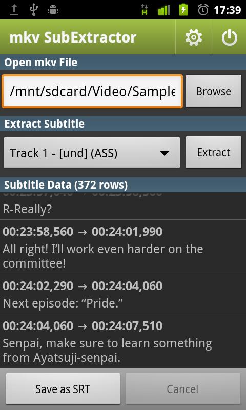 Then you can use this application to extract your subtitle from the mkv file and save it as a plain srt file.