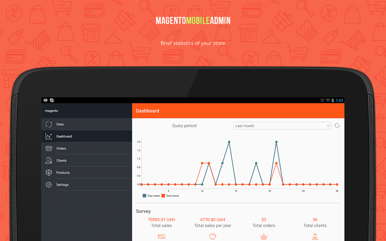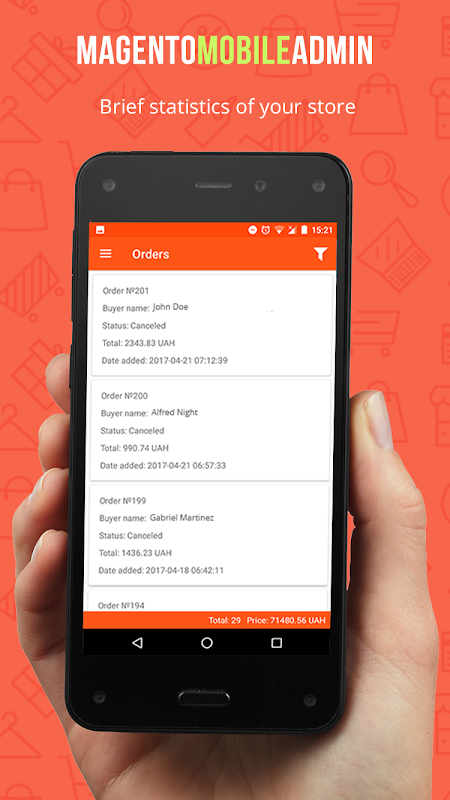 The application for owners of Internet shops working on Magento platform. This application will help you quickly access your orders online store using a mobile phone.