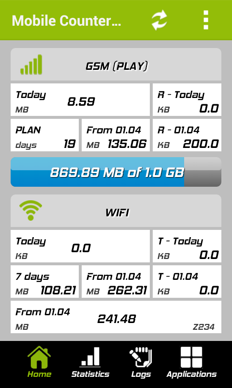 Oude versies van Mobile Counter | Data usage | Internet traffic