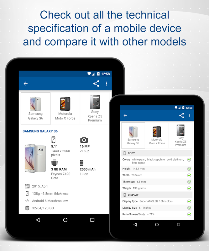 The app Mobile Guide is designed for you who want to check the technical specifications of a mobile device such as smartphones, mobile phones and tablets.