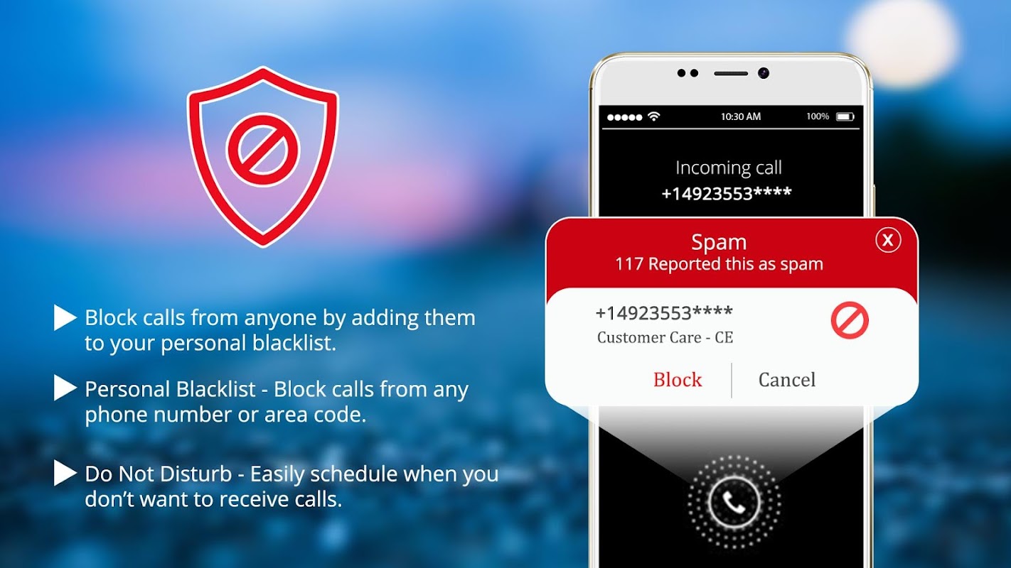 SPAM of Fake Call Blocker: SPAM of Fake Call Blocker stelt u in staat om onbekende beller te identificeren, ongewenste bellers te blokkeren, zoals telemarketeers, spam-bellers, oplichters, frauduleuze oproepen, geblokkeerde nummer bellers, onbekende beller en nep-bellers enz. U kunt geblokkeerde lijst beheren gemakkelijk. Wanneer u een inkomende oproep ontvangt en u de oproep wilt blokkeren, kunt u eenvoudig een nummer toevoegen aan de Blokkeren lijst. U kunt een nummer van de beller toevoegen aan de zwarte lijst. Wanneer de beller is toegevoegd aan een zwarte lijst, ontvangt u nooit meer een oproep van de geblokkeerde lijstgebruiker, maar kunt u een uitgaande oproep doen naar de geblokkeerde gebruiker. Als telemarketingjongens of spam of oplichters je lastigvallen door je op vreemde tijden te bellen, kun je ze gewoon toevoegen aan de zwarte lijst en spanningsvrij zijn.