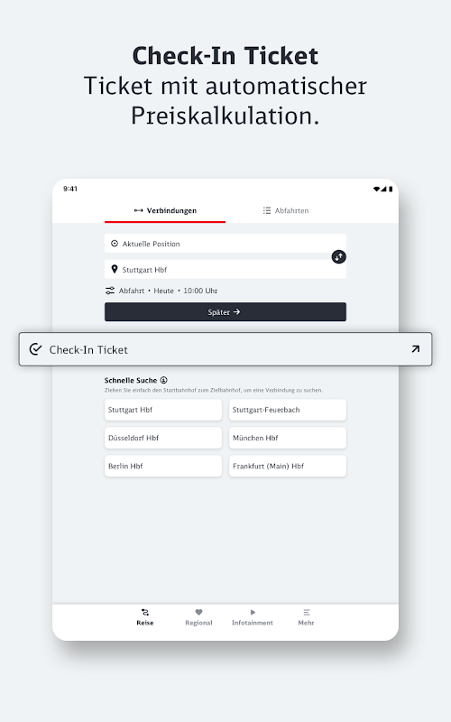 Een app die realtime reisinformatie en entertainment combineert. Hier vindt u niet alleen alle belangrijke gegevens over uw reis - of het nu uw route, de volgende halte of mogelijke verstoringen en vertragingen betreft - u geniet ook van een breed scala aan entertainment en informatie.
