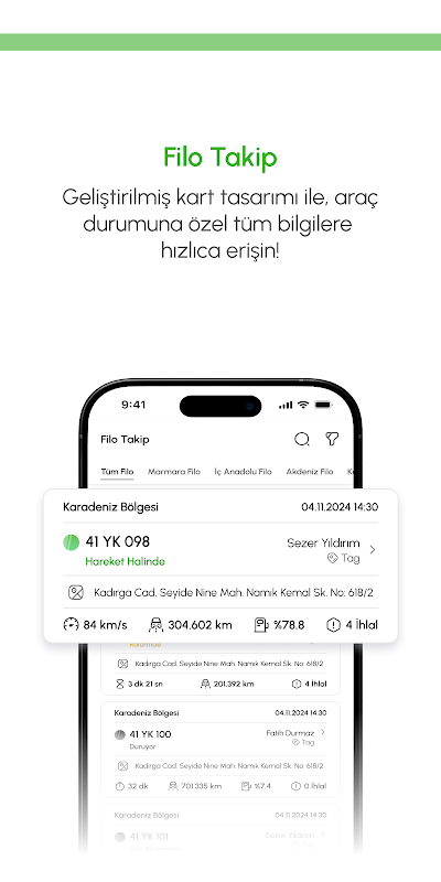 Verbeterde vlootweergave: bekijk direct de algemene status van uw vloot met het overzichtswagenparkscherm.