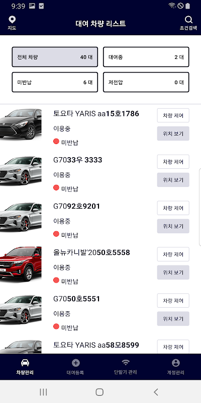 보유 차량 관제 기능 및 차량 상세 정보 확인이 가능합니다.