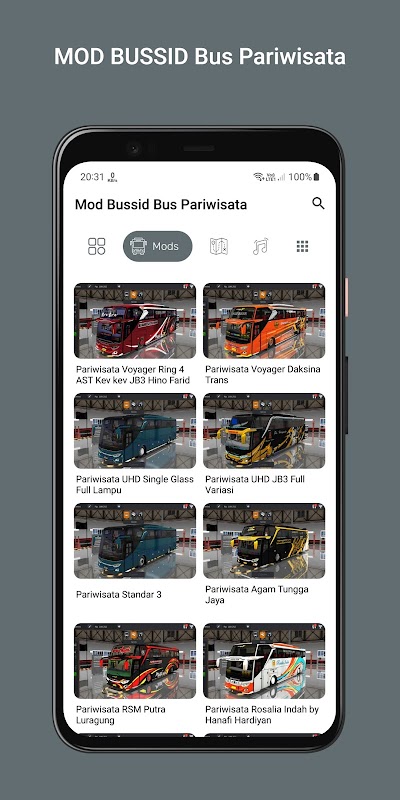 - Honderden mods voor bustoerisme zijn beschikbaar in deze applicatie.