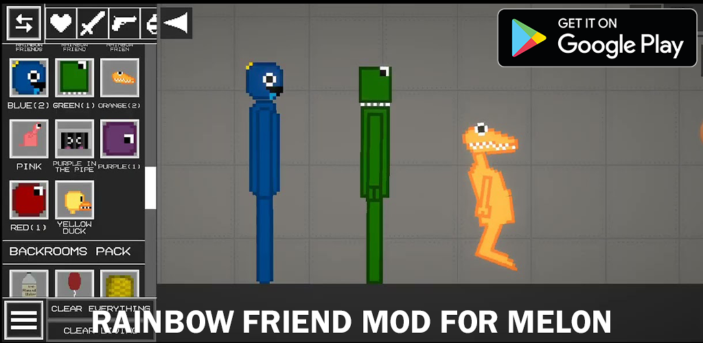 Krijg een breed scala aan Rainbow Friends-mods voor Melon Playground om je creativiteit maximaal te ondersteunen.