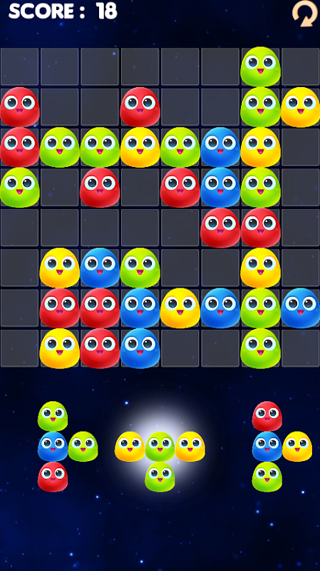 If you gather three blocks of the same color in a horizontal or vertical line, they blow up and you get scores.