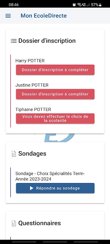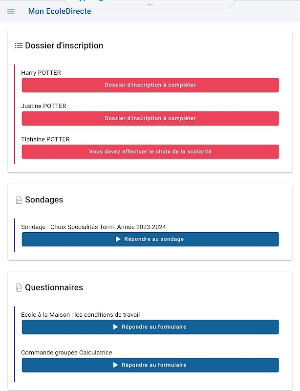 Deze applicatie is beschikbaar voor gezinnen, studenten, docenten en medewerkers die al een account op EcoleDirecte in hun school.