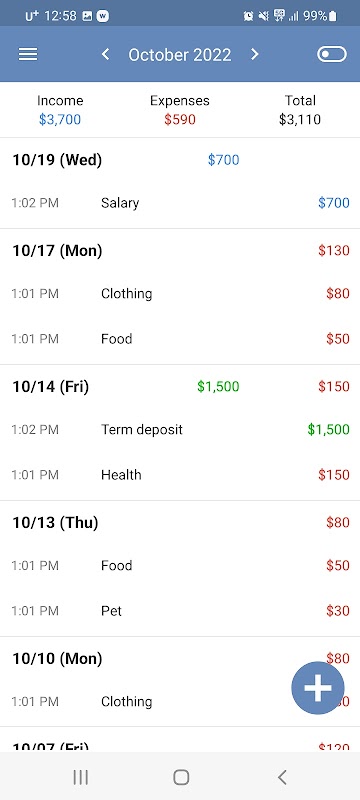 U registreert eenvoudig en gemakkelijk uw inkomsten/uitgaven/spaargeld.