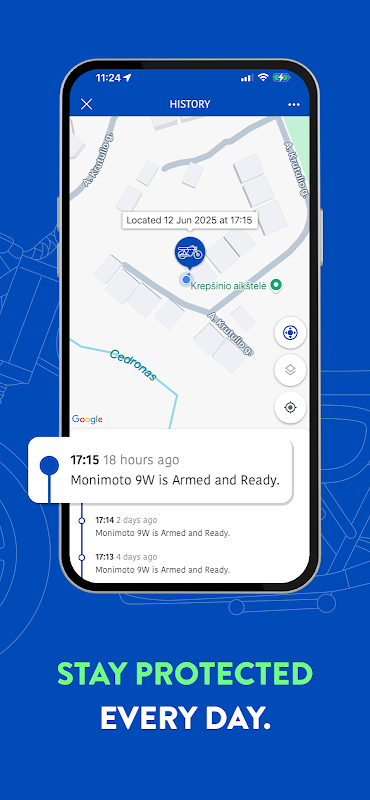 Monimoto gives riders and owners peace of mind when the bike is away and might be stolen. In case of alarm, Monimoto calls the owner and pushes a notification with GPS or GSM location and other data to the app.