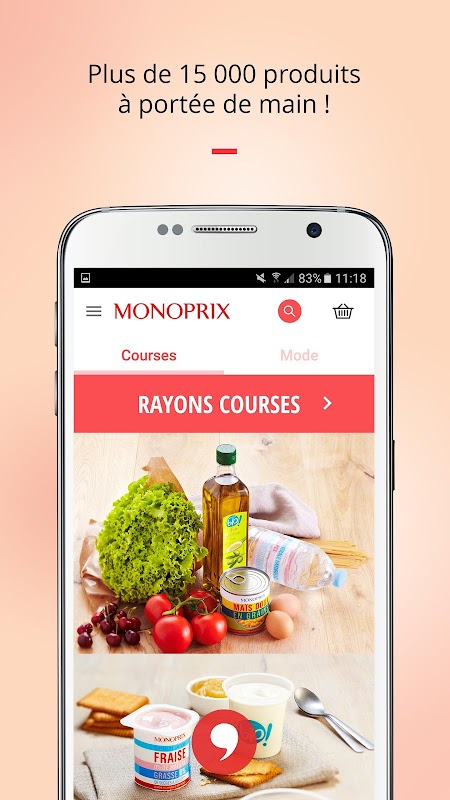 • Faites votre shopping en un coup de pouce depuis votre smartphone ou votre tablette parmi plus de 15 000 produits Courses (alimentation, hygiène, beauté, maison) et 5 000 produits Mode