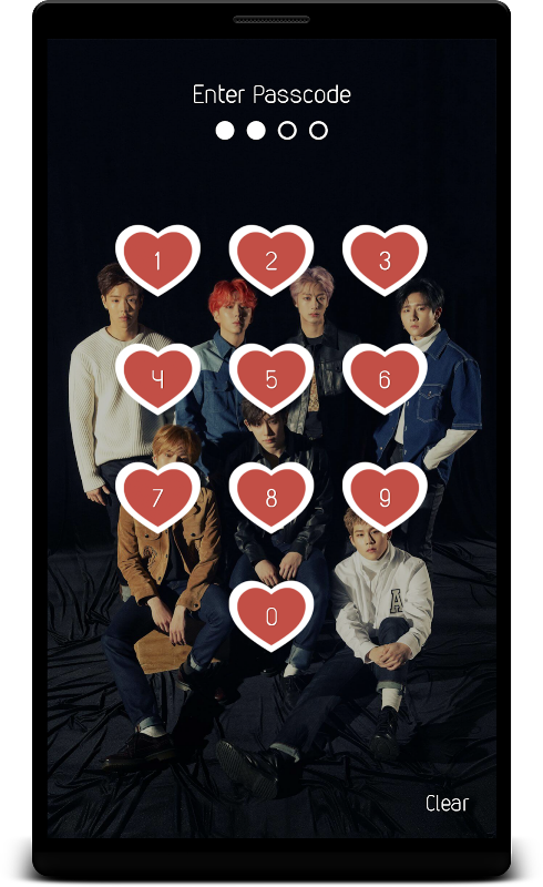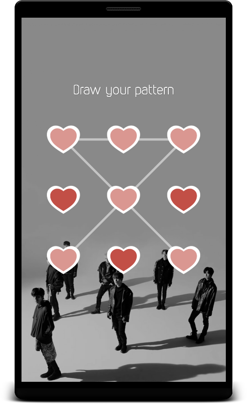 This lock screen is based on Monsta X theme. There are many Monsta X HD backgrounds in this app. You can unlock your phone using different methods like Slide to unlock, enter passcode, draw pattern, pin, etc.