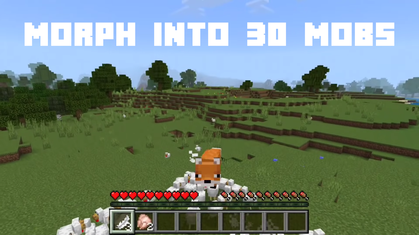 Met Morph Plus Add-on kon je veranderen in 30 mobs in Minecraft, waaronder Axolotl, Bat, Bee, Blaze, Cat, Chicken, Cow, Creeper, Dorwned, Enderman, Fox, Ghast, Horse, Husk, Iron Golem, Pig, Sheep, Shulker, Skelet, Slijm, Sneeuwgolem, Spin, Verdwaalde, Vex, Dorpeling, Heks, Wolf, Zombie, Zombie Pigman.