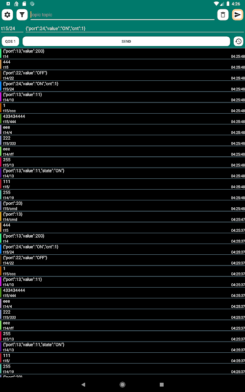 3. Voer een bericht in, bijvoorbeeld: "{port: 10, value: 1}"