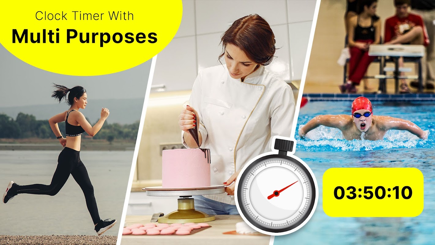 U kunt de multitasking zwevende timers gebruiken voor koken, sporten, wassen, sporten, studeren, werken, gamen en tijdens het gebruik van andere apps.