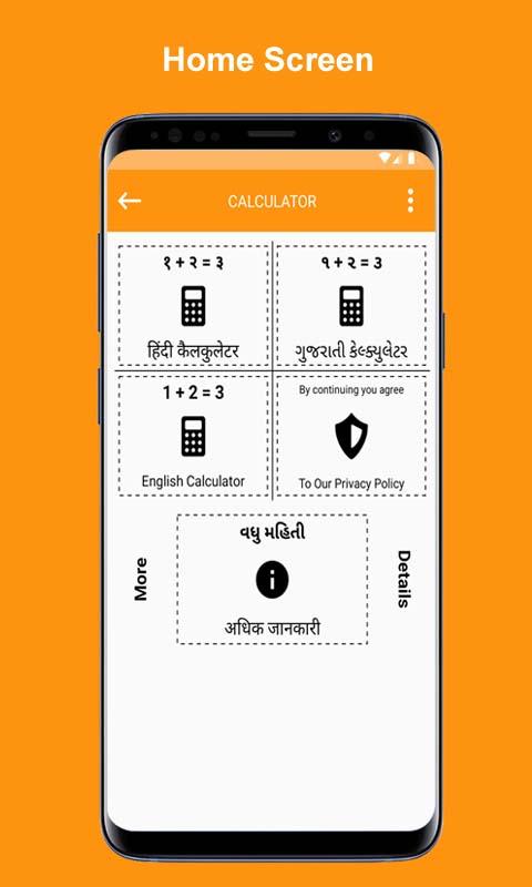 → Eenvoudige multi-taal Gujarati, Hindi & Engels Ondersteuning Calculator.