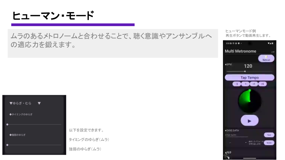 De beats worden weergegeven door cirkelvormige bewegingen, waardoor de beat gemakkelijk visueel te begrijpen is.