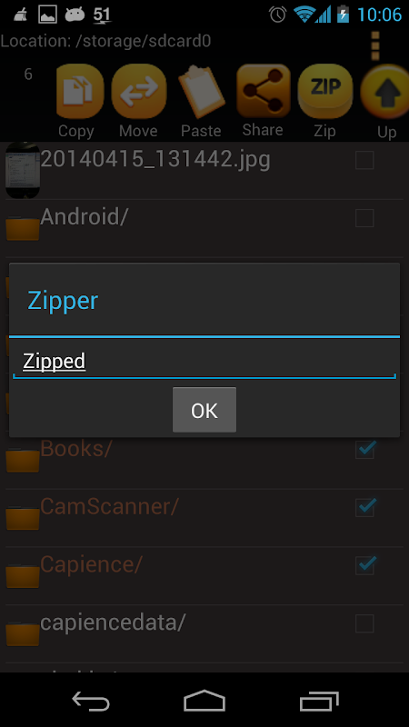 * Selected files and can be removed from that list with just a swipe.So before performing any action you can view all the files on which the operation is going to be performed.
