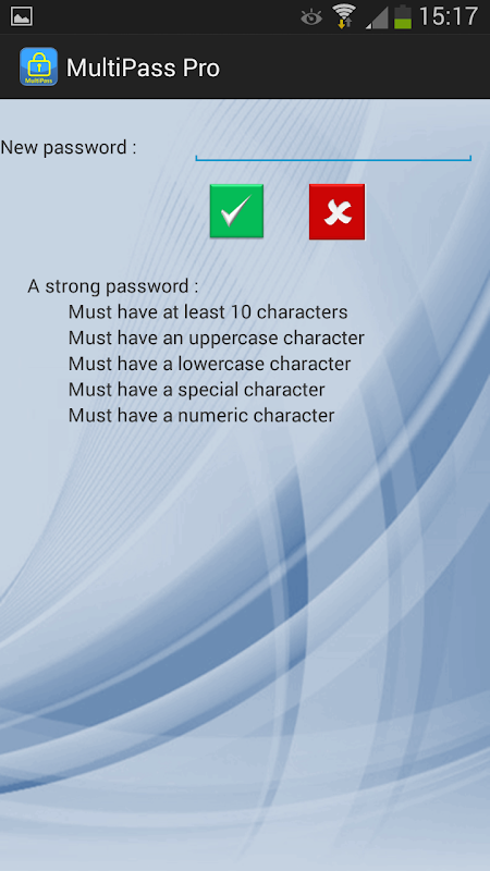 Deze applicatie heeft geen gegevens opslaan op de cloud of server, maar alleen lokaal. Maar het is uw verantwoordelijkheid om een wachtwoord kwaliteit om het risico te verminderen in geval van diefstal van het apparaat te bieden.