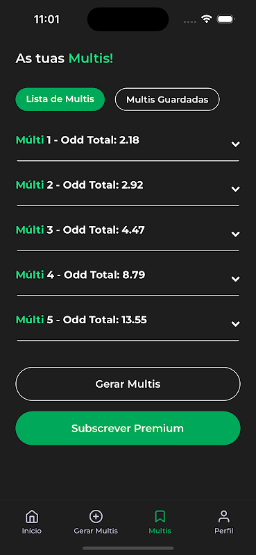 Multis is een innovatieve app waarmee je voetbalweddenschapscombinaties kunt genereren op basis van jouw voorkeuren. Vul gewoon een eenvoudig formulier in om aangepaste combinaties te maken. Elke gebruiker kan maximaal 2 gratis combinaties genereren. Daarna kunt u ervoor kiezen om u te abonneren om onbeperkte combinaties te ontgrendelen. Bekijk de winstkansen voor elk team en test verschillende scenario's om uw kansen op succes te vergroten. Alles wat u nodig heeft om weloverwogen weddenschappen te plaatsen, ligt binnen handbereik.