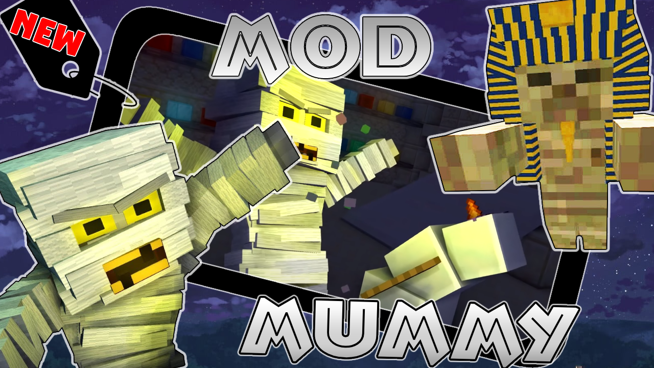 The addon will add new hostile mobs to the game - mummies, these are ancient creatures living in pyramids and labyrinths. Fortunately, in order to see these creatures, you need to wait for the night and they will come out from everywhere and begin to attack the villagers and the player. There are two types of mummies: wrapped in bandages and yellow-eyed, they replace the husk, the only difference is in the skin. These embalmed bodies can swim and run freely, but luckily they cannot fly. Monsters appear randomly, these long-forgotten creatures lived in the tombs of the kings, but now you can see them in the game. The pixelated world of virtual reality will add new monsters to its variety. This is a challenge for an experienced player and youtuber, ancient creatures have been subjected to special chemical treatment, which is why, even though they are more than a thousand years old, they run perfectly and want to eat heroes and animals. This is an unsuccessful experiment of medieval healers. If you add these creatures to your map, the survival mode will go into the hardcore difficulty level and the invasion can lead to an apocalypse, so craft weapons, rebuild defensive buildings and houses, and only then summon evil spirits for the battle of infinity. Skins of cool cartoon mummies can also be downloaded for free, play a trick on your friends or change clothes, stupid monsters will not understand that you are not one of them. Having dressed the skin of the ancient Egyptian pharaoh, you can control the mummies and lead them to the city and besiege it.
