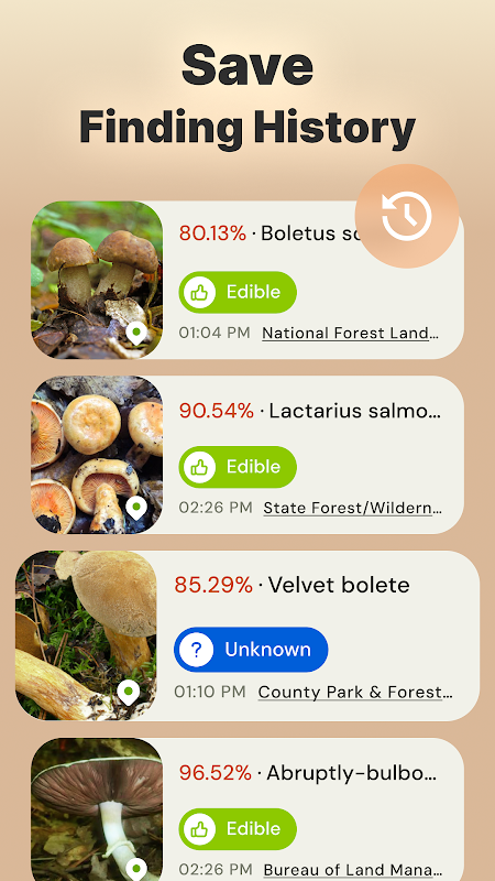 -Beschrijvingen en foto's van elke paddestoelensoort zijn offline beschikbaar.