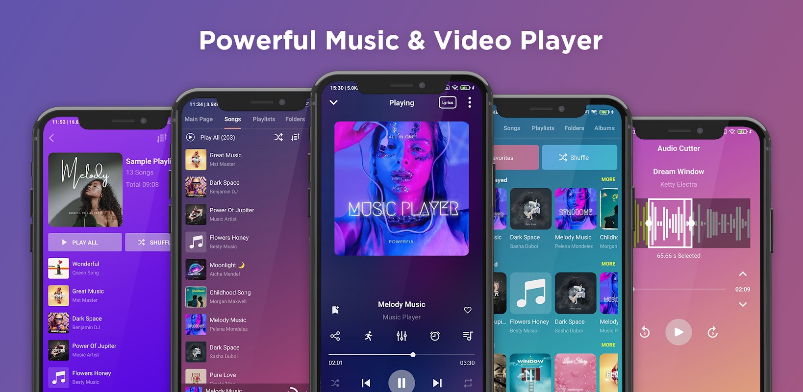 Mp3-speler - Videospeler en mp3-snijder. Muziekspeler voor alle songformaten.