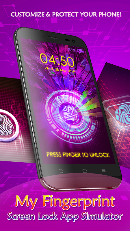 ✲ The last word in technology when it comes to security locks is without a doubt a “fingerprint scanner”. Only one person is granted access to anything that has this kind of device installed, and due to that, it is unique, and most likely the safest way to protect something. Nowadays, smartphones started using this kind of technology but, in order to have the option of using it, you need a previously installed “fingerprint lock”. If you happen to be a user of one of those fingerprint lacking phones, you've come to the right place! ⌘ My Fingerprint Screen Lock App Simulator ⌘ is a fingerprint simulator that will make everyone believe that you're the only person able to access your device's menu with this phenomenal “lock screen app”! So tap that Download button, and get this application for free!