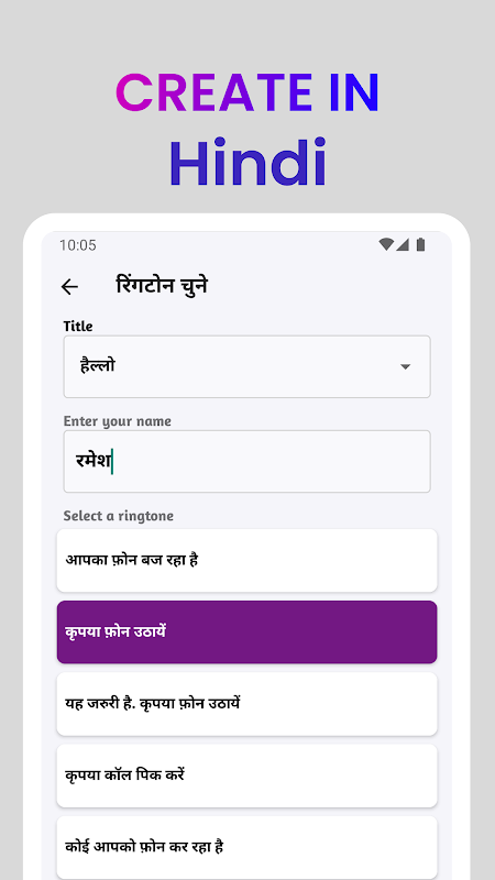 Just choose ringtone language on home screen and enter the name. Finally choose desired text ringtone and click next. Your name ringtone will be ready in few seconds.