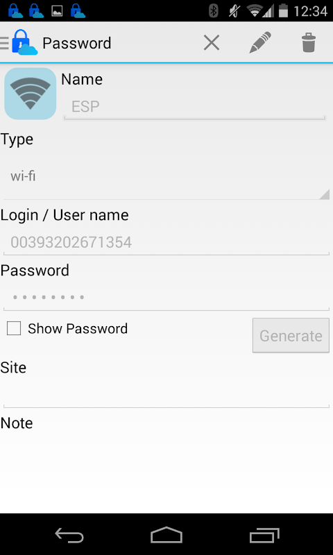 Stel een wachtwoord in om toegang te krijgen tot al uw wachtwoorden. De database is versleuteld met AES -256 (maximale beveiliging die je kunt hebben op een smartphone), zelfs als je verliest zal het apparaat niet in staat om uw wachtwoord te achterhalen.