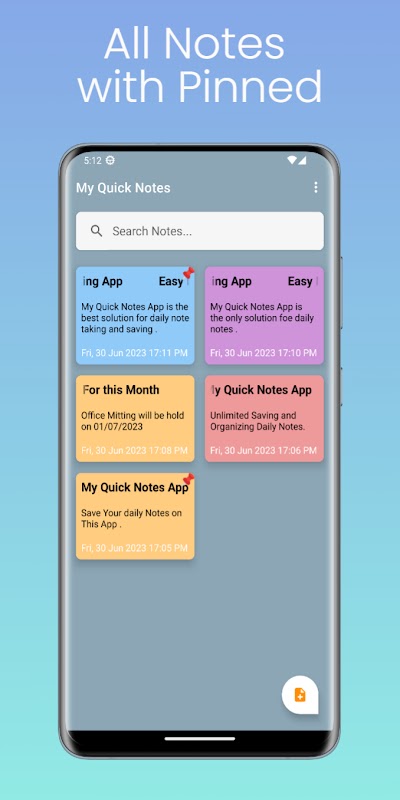 My Quick Notes is een gebruiksvriendelijke en intuïtieve notitie-app die is ontworpen om uw dagelijkse notitie-ervaring te vereenvoudigen. Met zijn gestroomlijnde en moderne ontwerp biedt deze app een handig platform voor het vastleggen en organiseren van uw gedachten, ideeën en belangrijke informatie, allemaal op één plek.