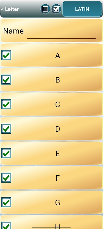 - Latijns of cyrillisch alfabet, alle of alleen de gewenste letter.